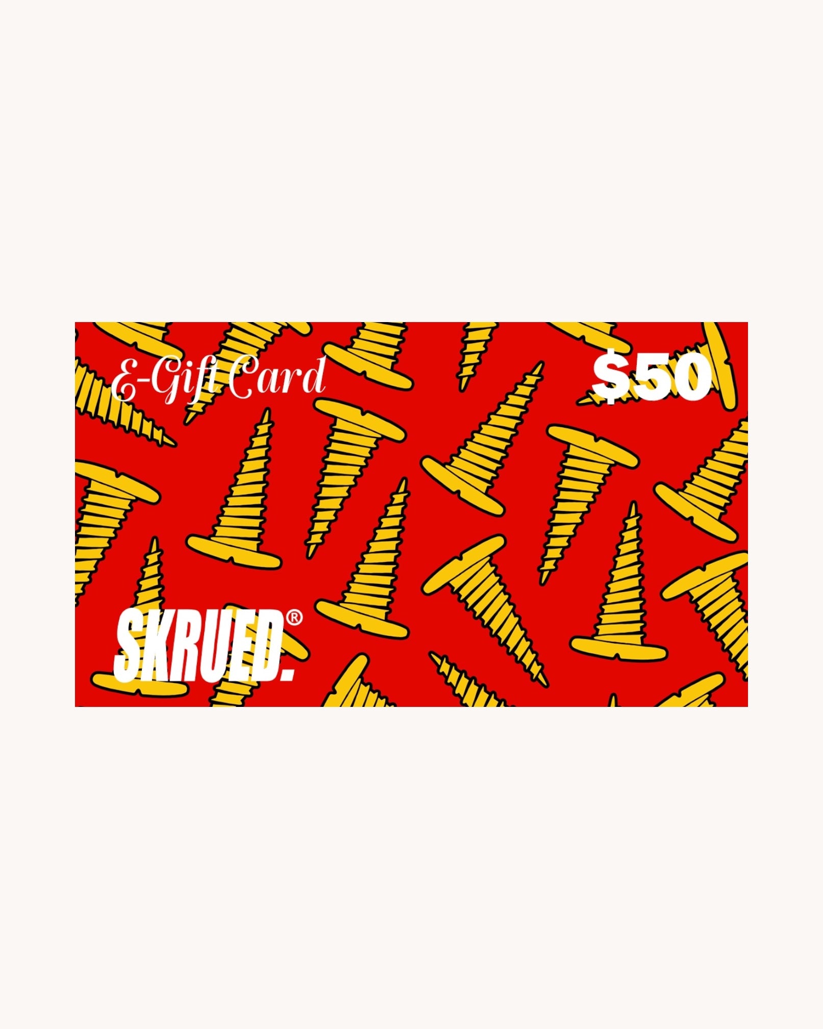 Redeemable at SKRUED.com for goods not exceeding the remaining credit balance on this card. Threat this card as cash; if it is lost, it will not be replaced. Valid for one (1) year from the date of issue. For gift card balance, terms and expiration date, email customerservice@skrued.com