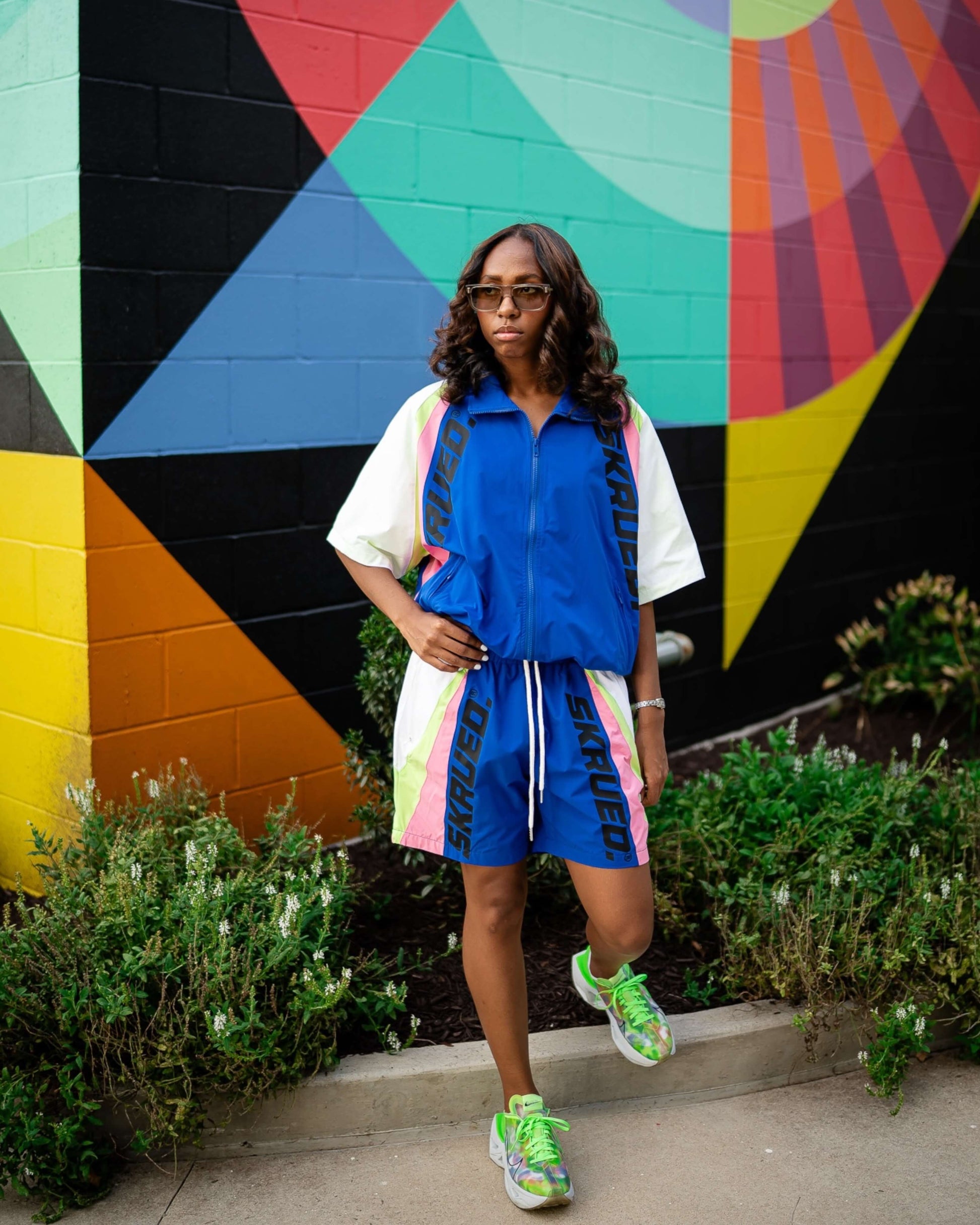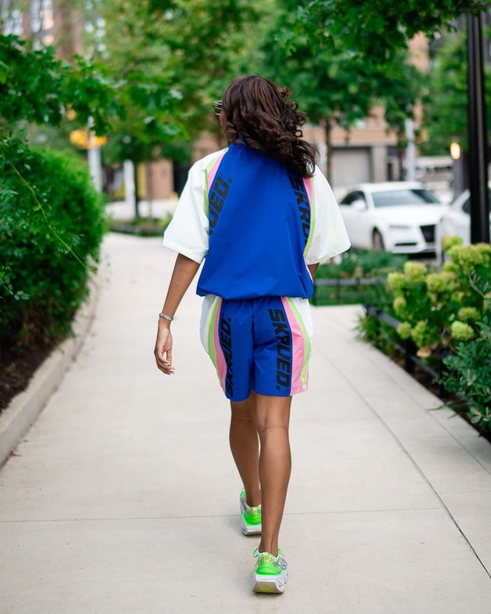 - Blue with neon, white and black