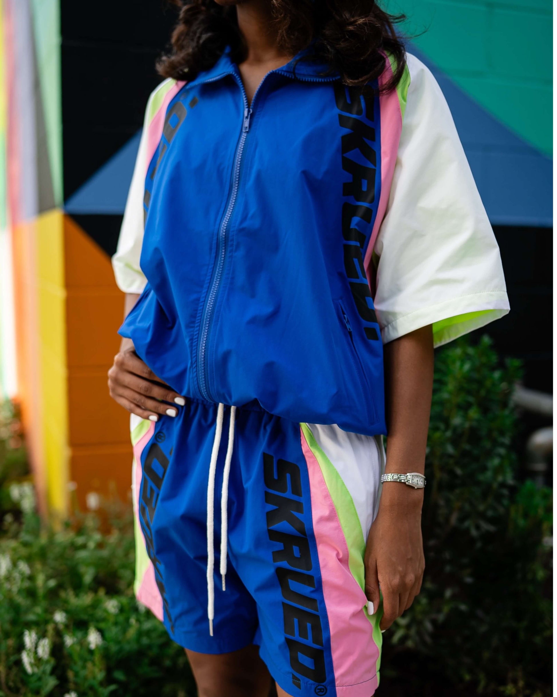 Redefine summer layers with this short-sleeve shell track top! Designed with a lightweight, weather-conscious shell and breathable mesh lining, this piece is perfect for staying cool and stylish as you build in the summer heat. Bold logo prints hit the front and back, while a sleek zipper closure and zip pockets provides both function and edge. Pair with the "Heatwave Shell Track Shorts" to create the ultimate summer vibe!