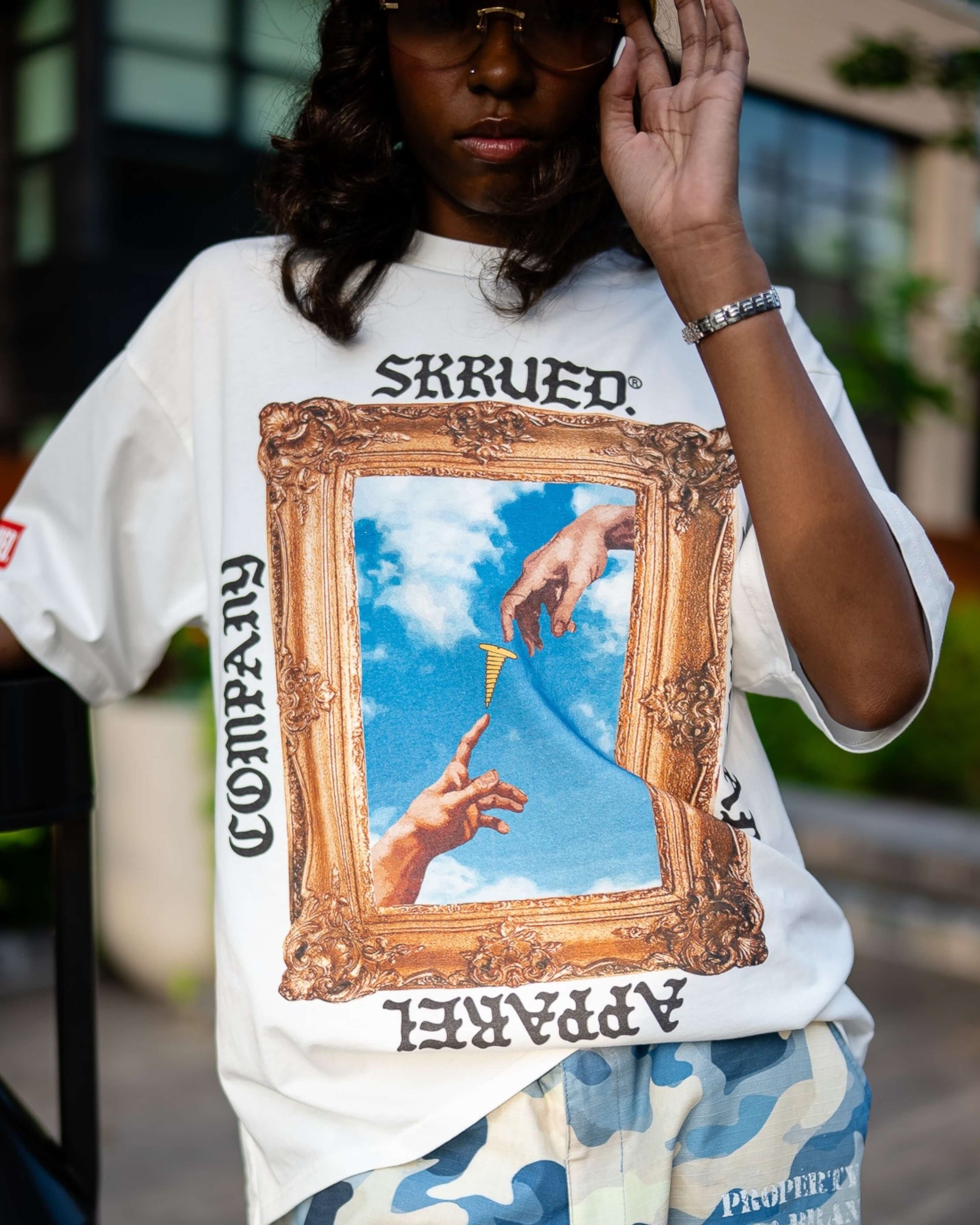 This piece draws inspiration from The Creation of Man, reimagining the iconic painting with a bold twist! At its center, a framed DTG print depicts the creation of our "inspire screw" logo symbolizing that spark of life to begin building something great. No matter your goals or aspirations, this piece serves as a reminder to start building, screw by screw, and watch your vision come to life!