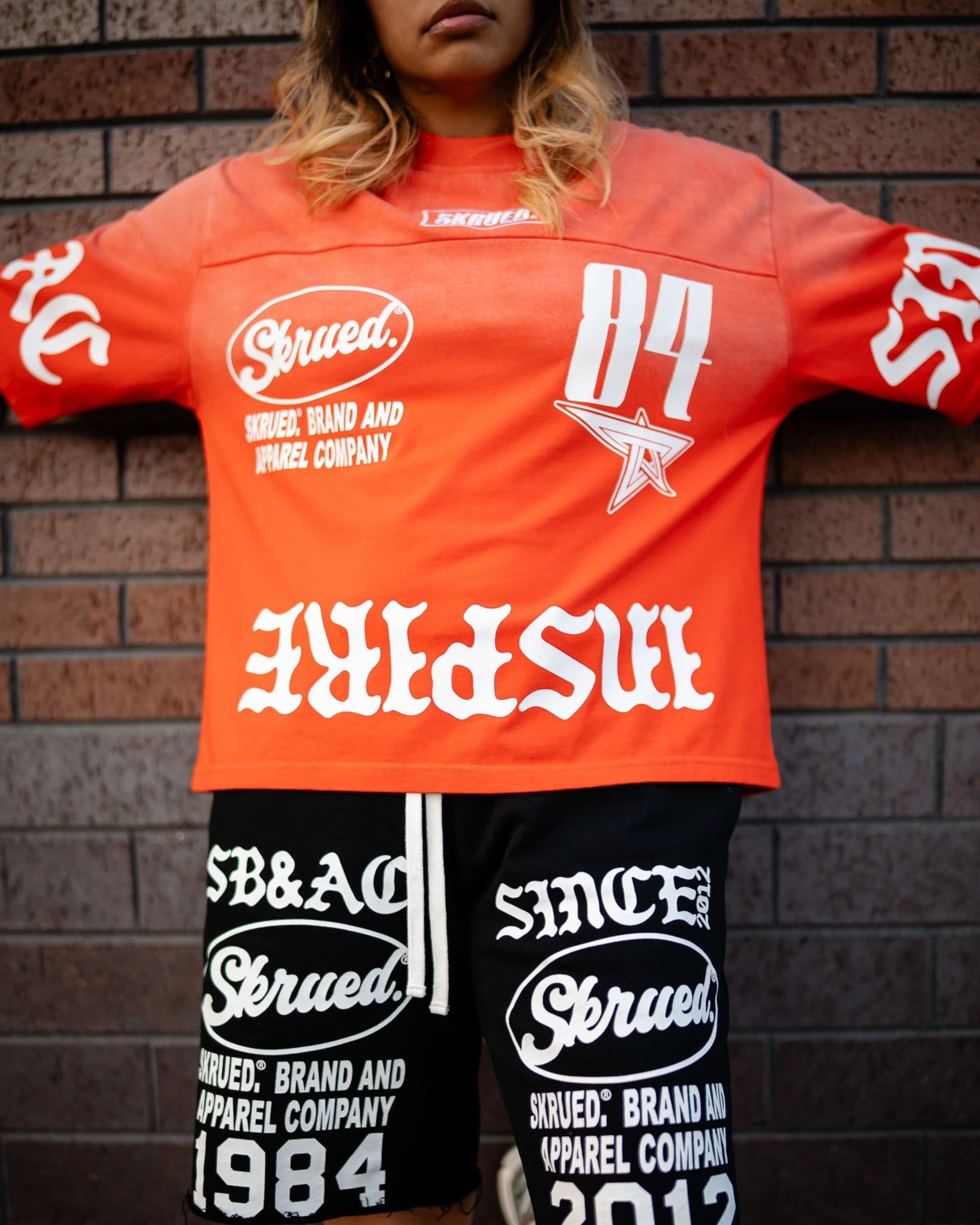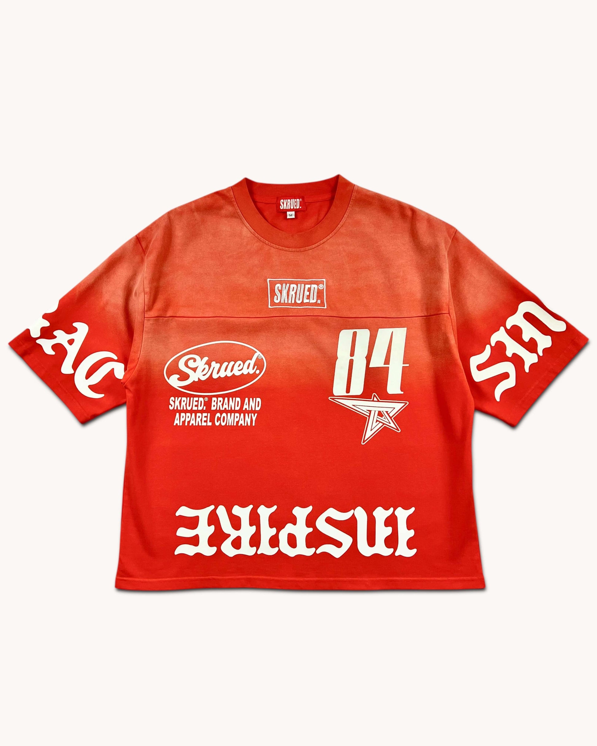 Designed with a sun fade vintage wash effect, this heavyweight jersey cut tee captures the look and feel of something worn through every step of the journey! Brand logo prints grace every corner of this cropped length piece for a bold and edgy statement while the sun fade speaks to the wear and tear necessary as you build towards greatness!