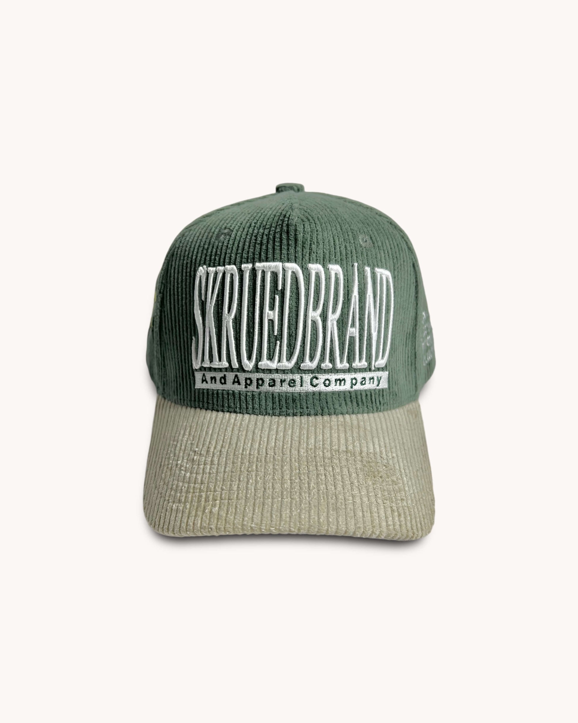 Trucker style hat constructed with premium corduroy and 3D front SKRUEDBRAND embroidery. Also features embroidery on each side and above snapback closure.