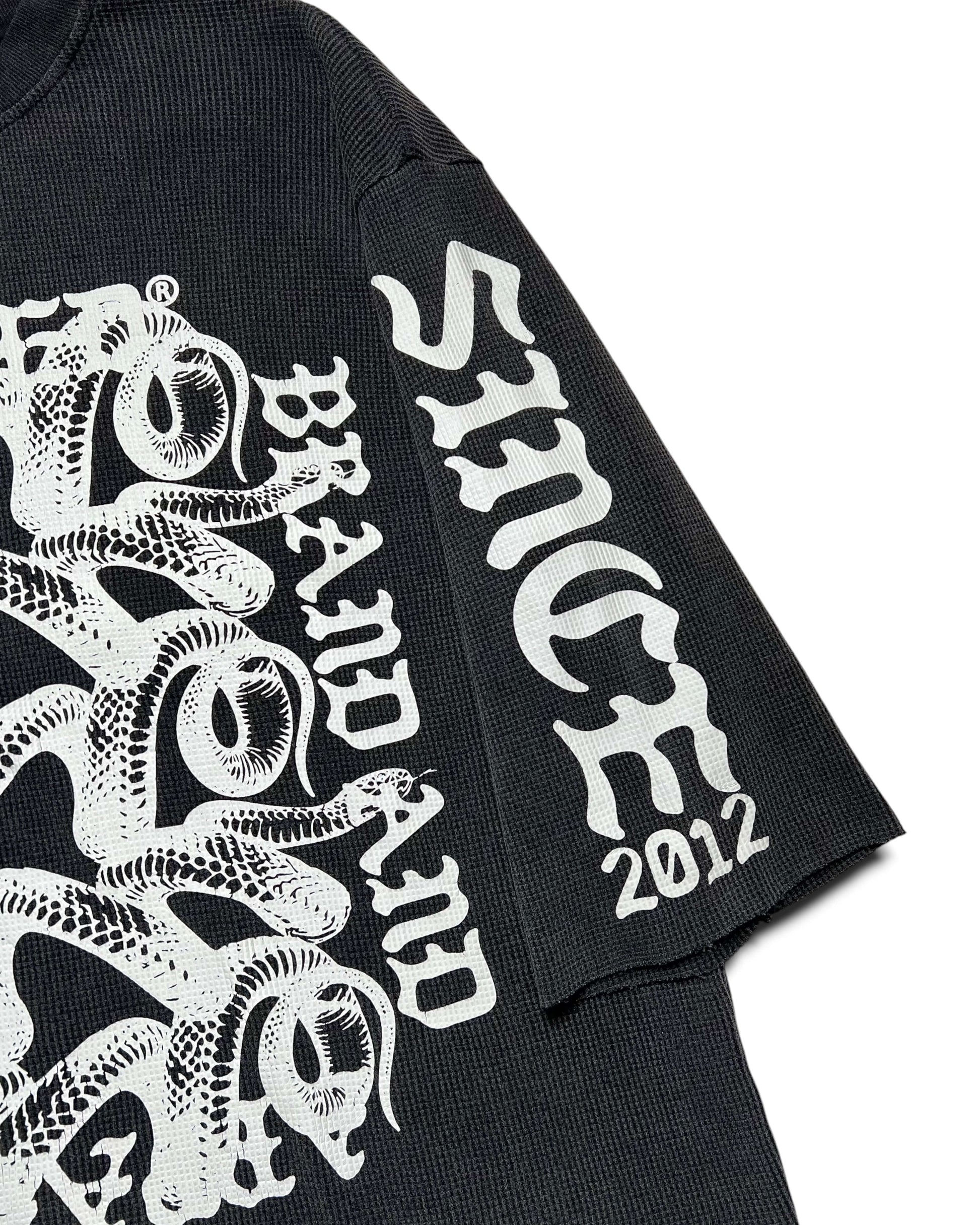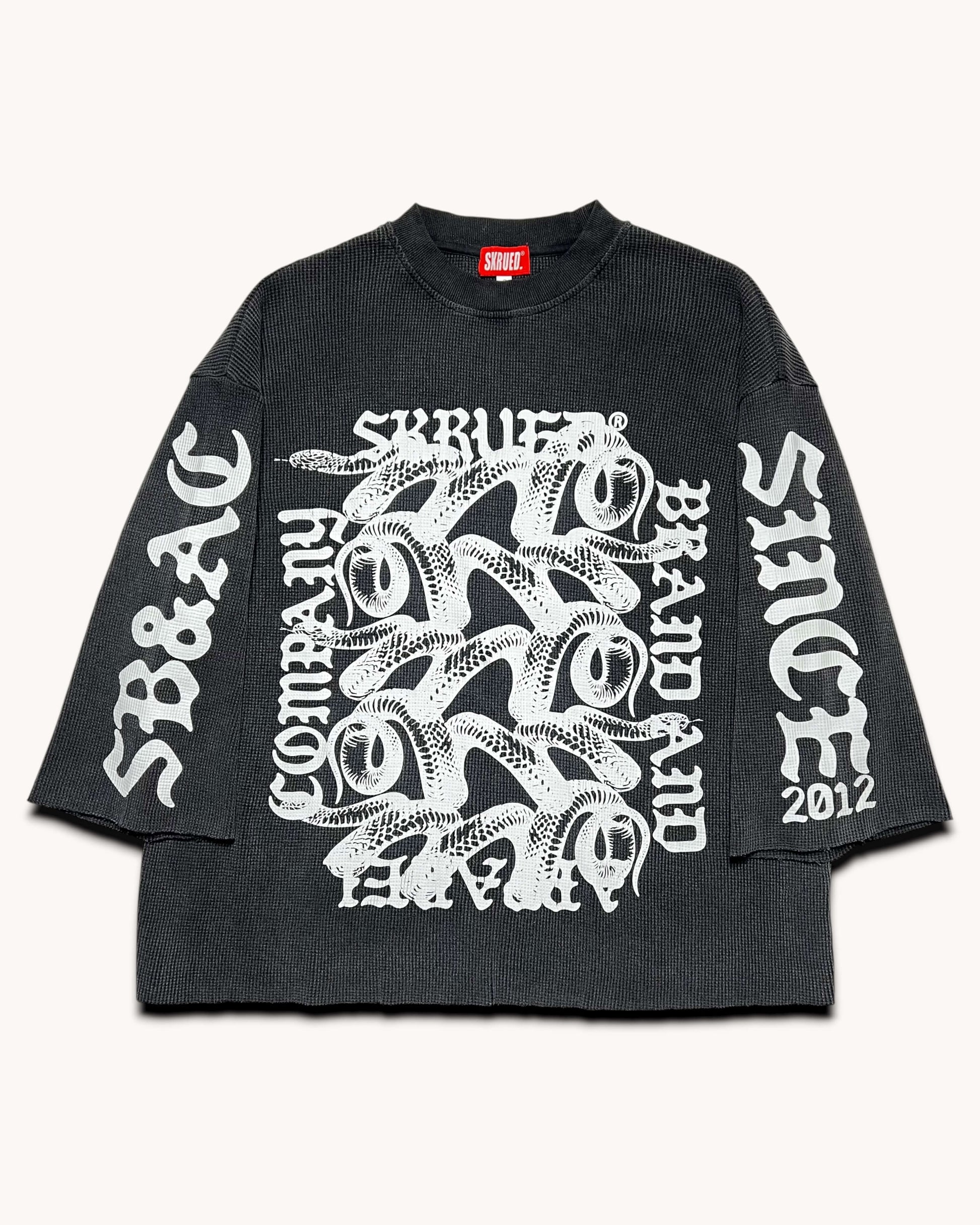 This oversized thermal was designed for those who know every environment won’t be safe. Featuring a bold snake graphic print, raw hem finish, and raw three-quarter sleeves, it carries an edge that reflects the reality of navigating through untrustworthy energy and hidden intentions. The comfortable yet rugged look is a reminder that growth often comes in difficult places, yet this is what molds you to become unstoppable as you continue to elevate up out of any pit!