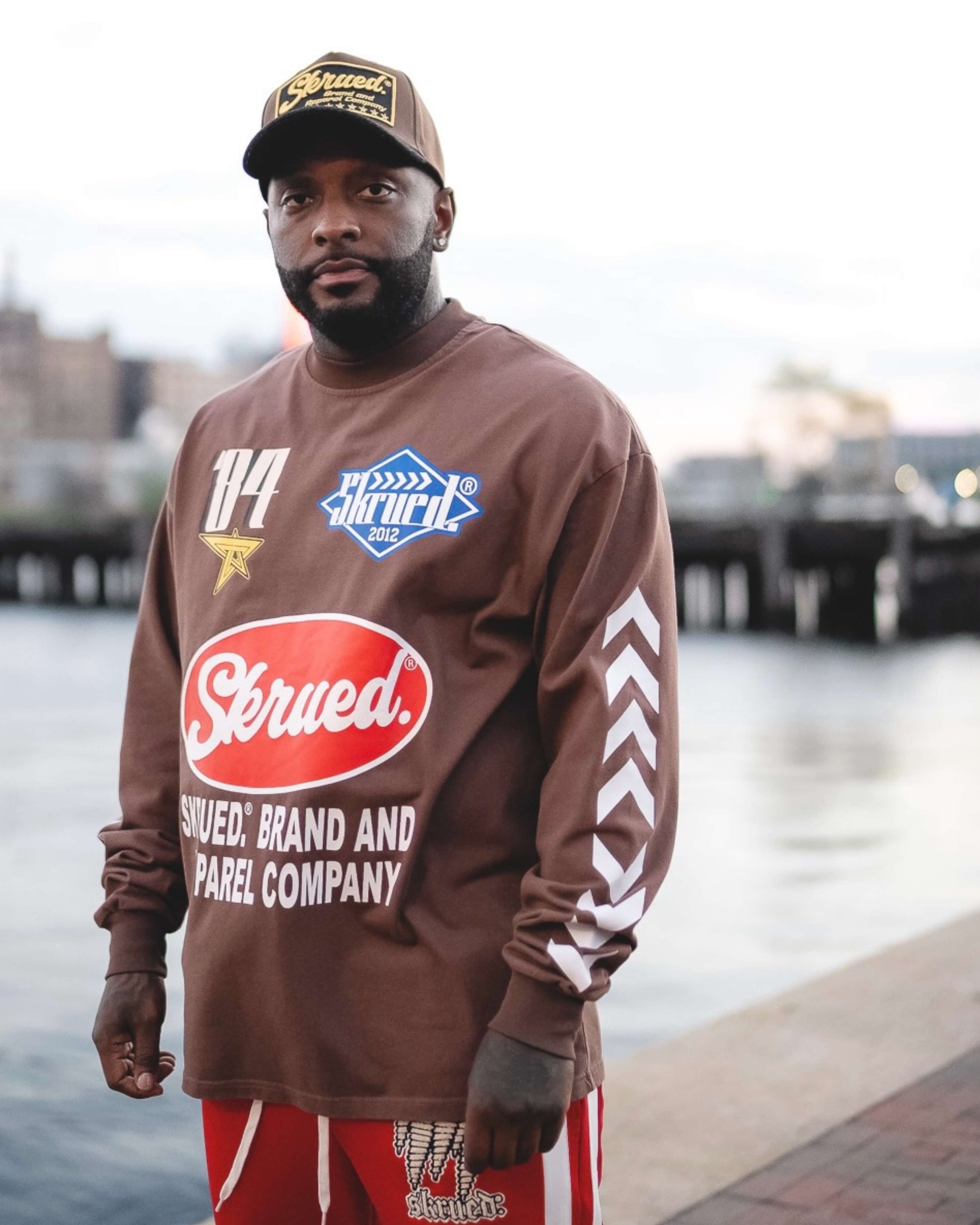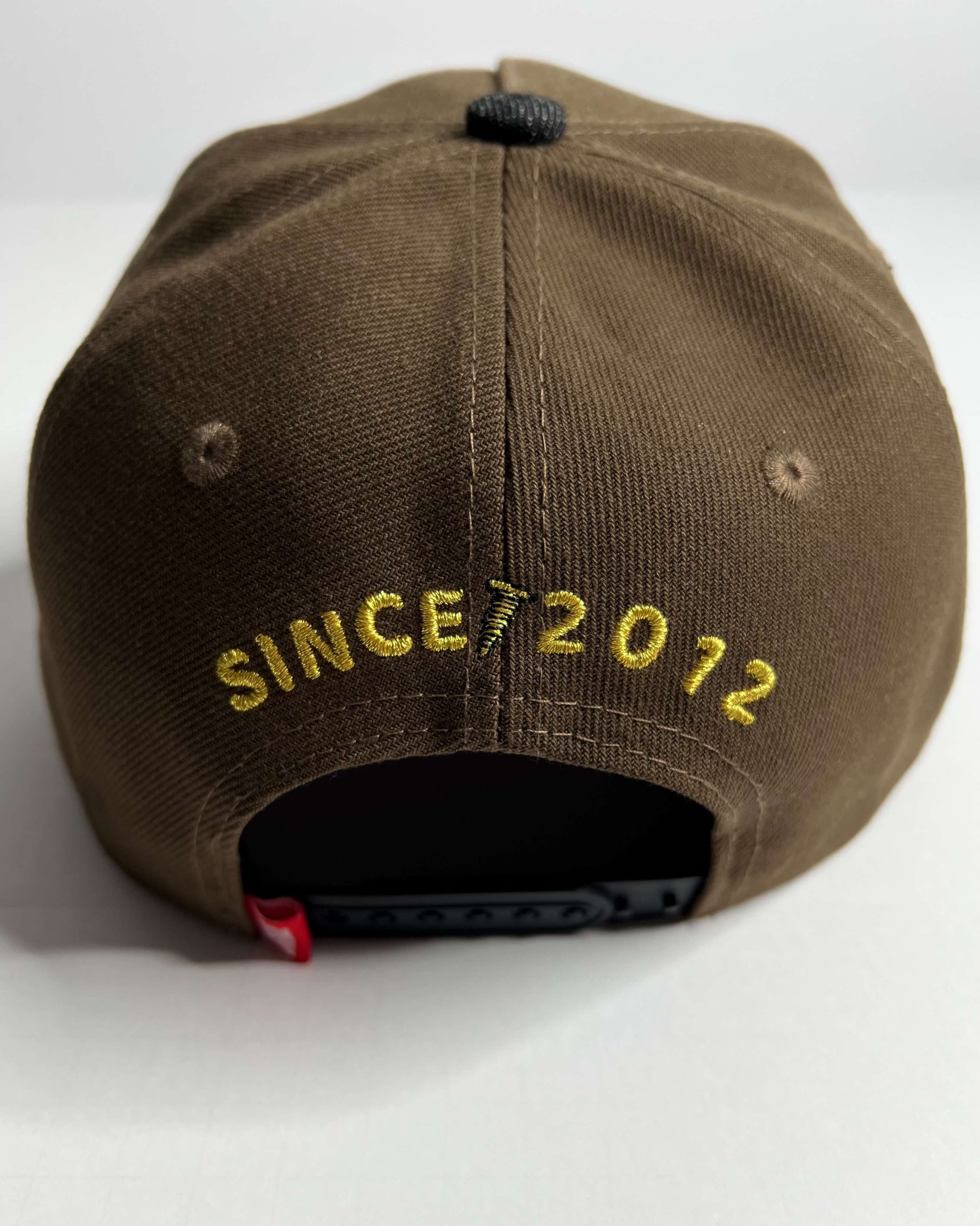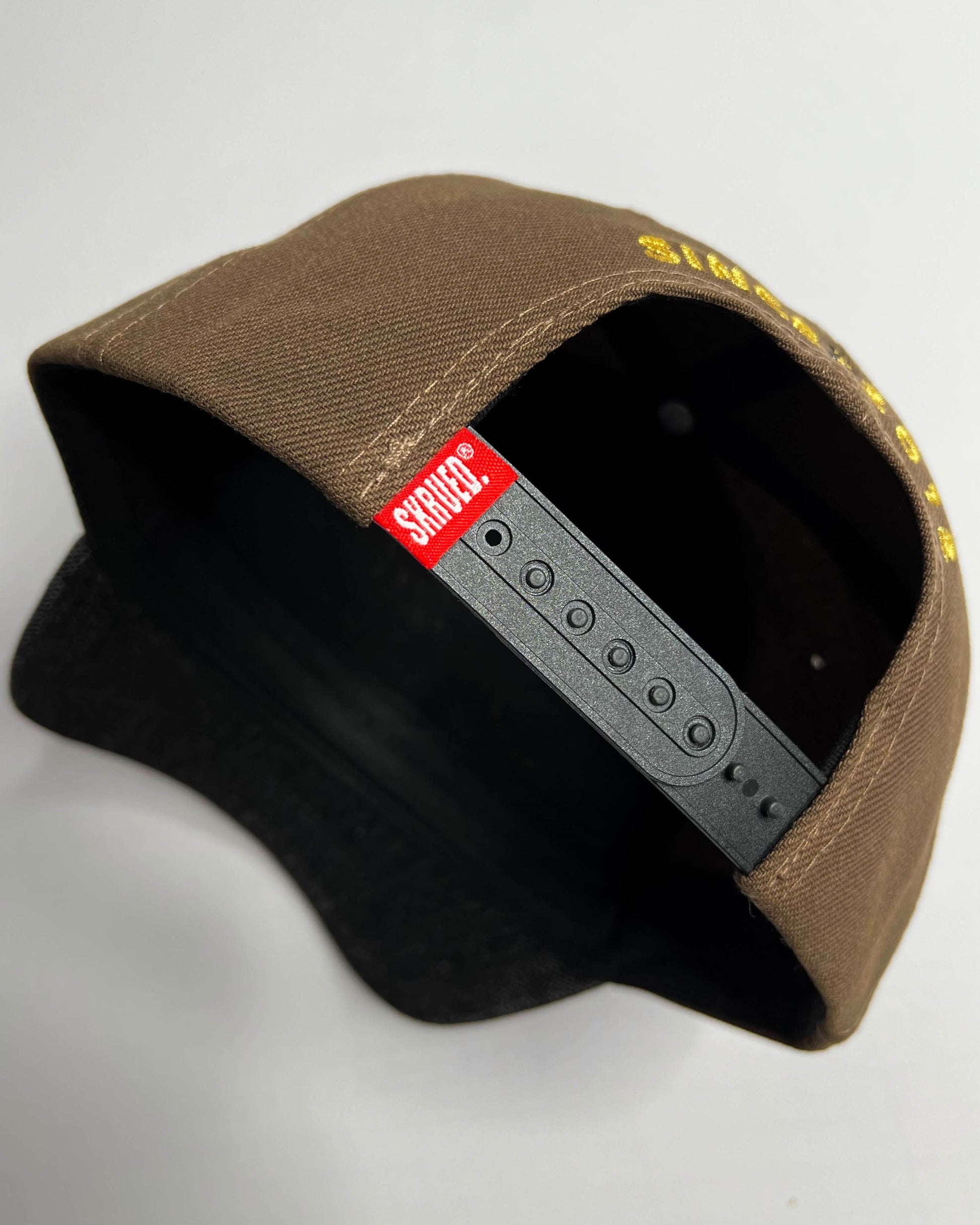 Snapback hat with front Star Patch 3D embroidery and denim brim.