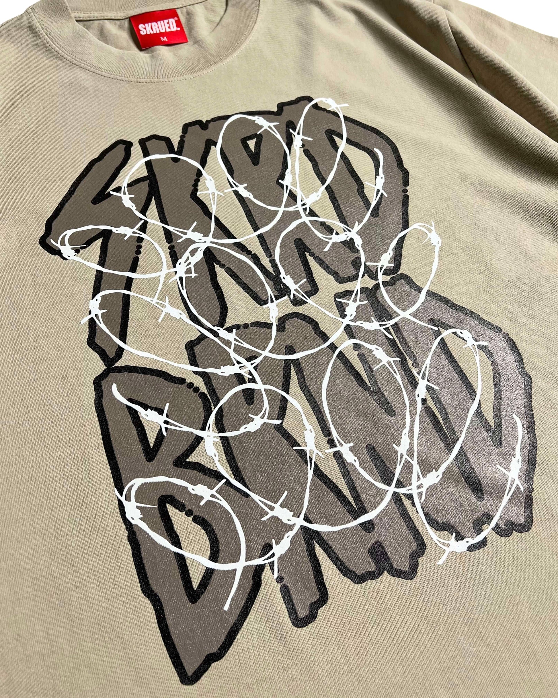 Sometimes you have to push your way through, even through the wire! This vintage washed tee is printed with an abbreviated brand logo under barbwire depicting obstacles we face. Yet in still, the mission is clear and visible on the other side, prepare and get through!